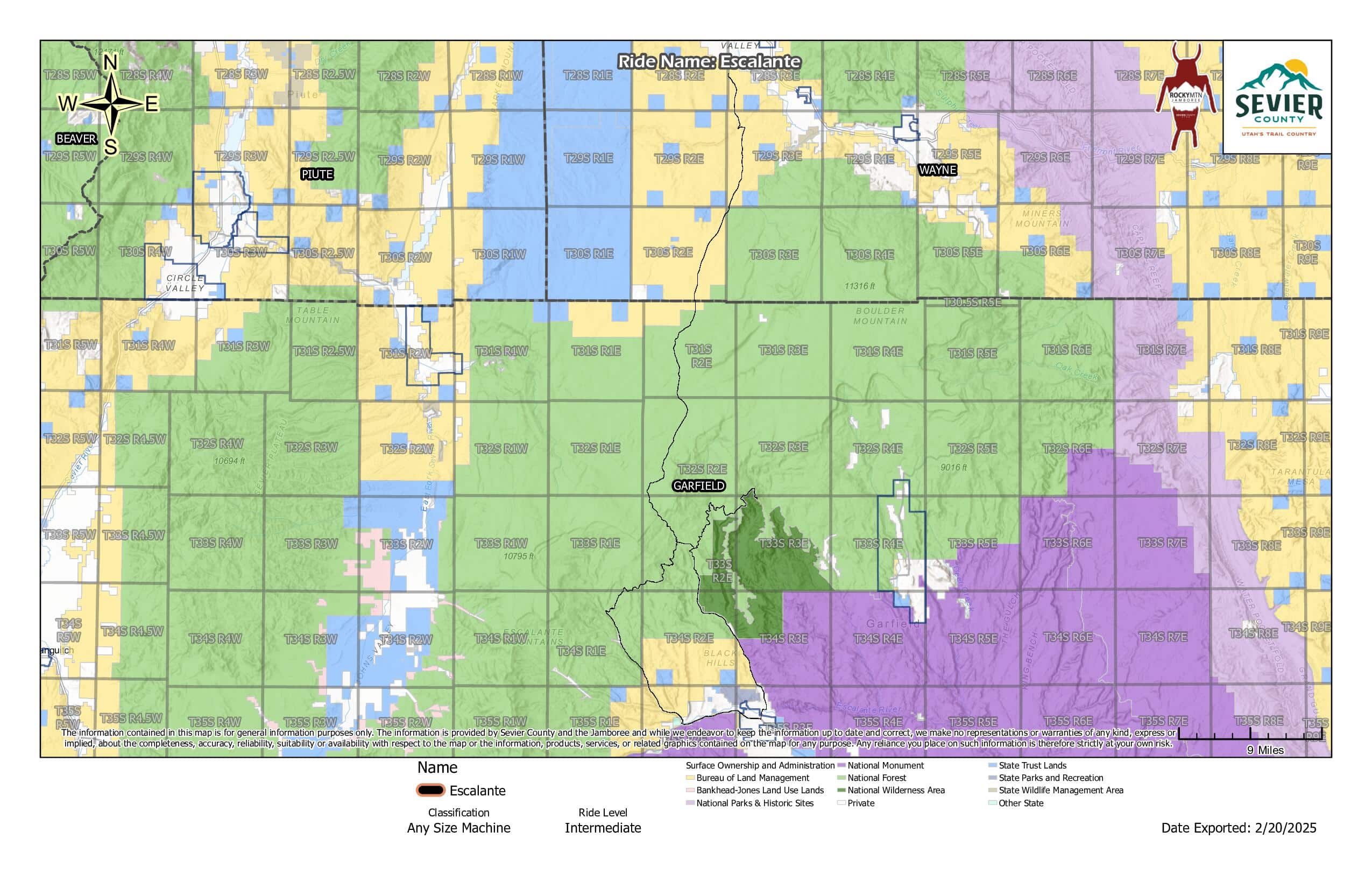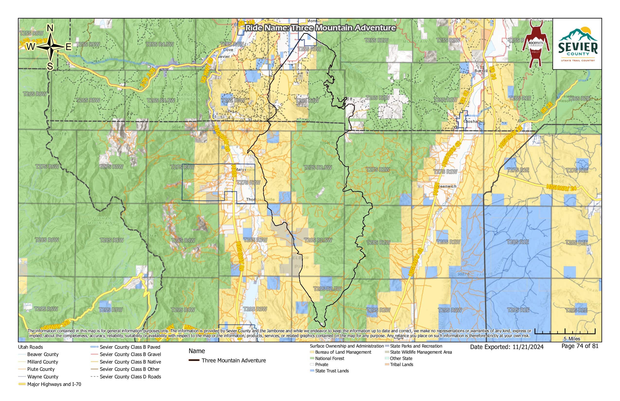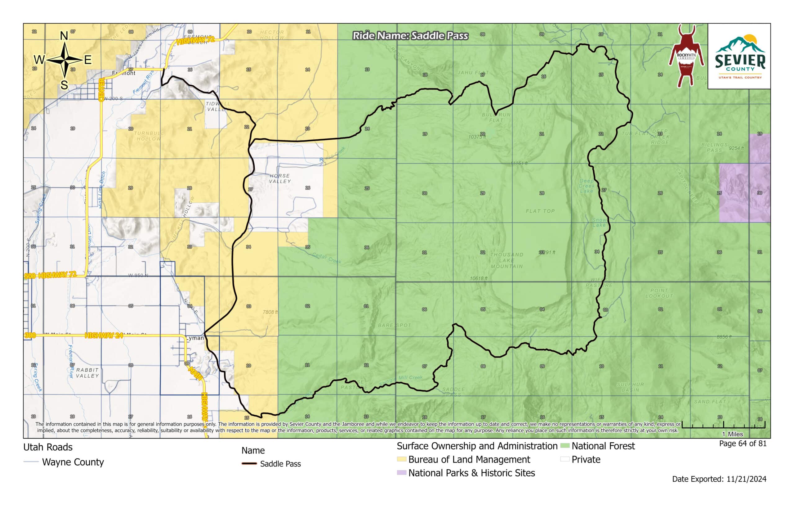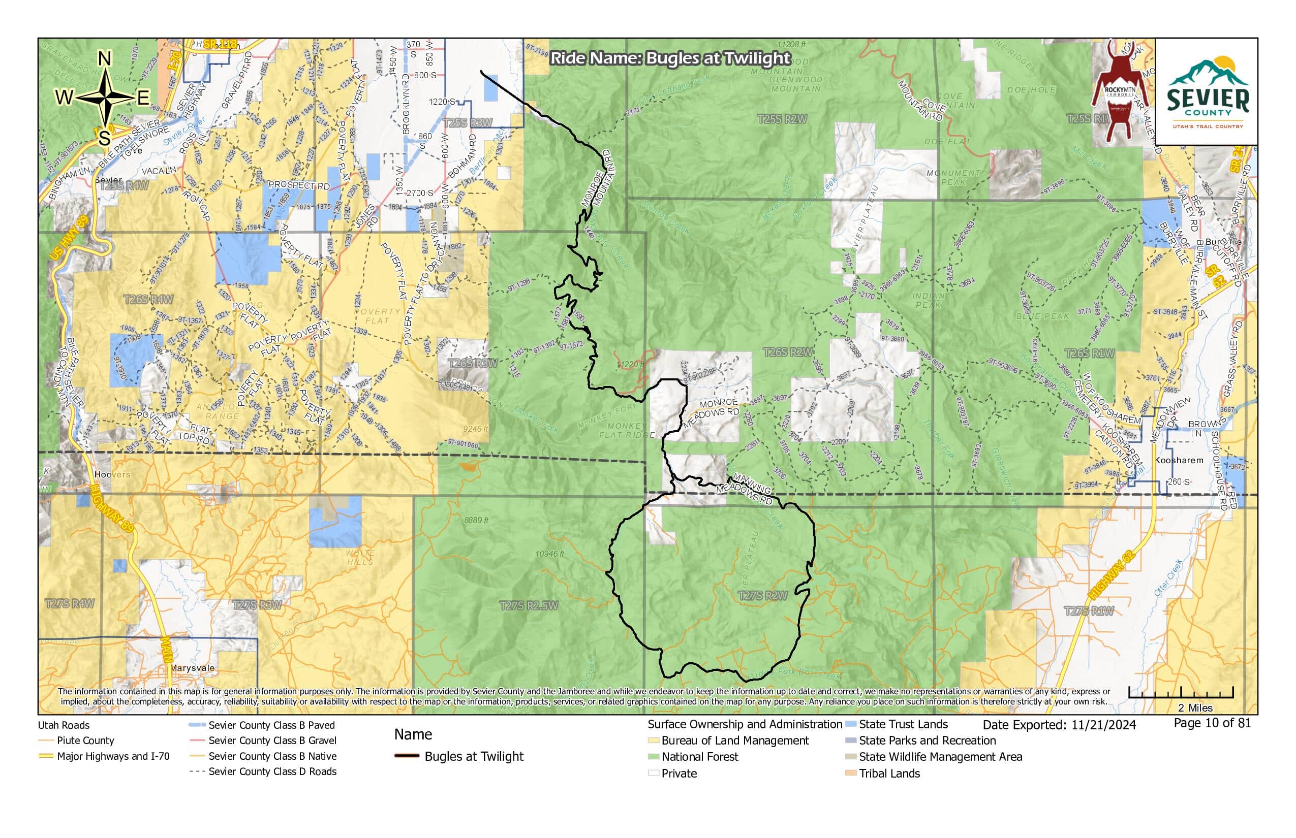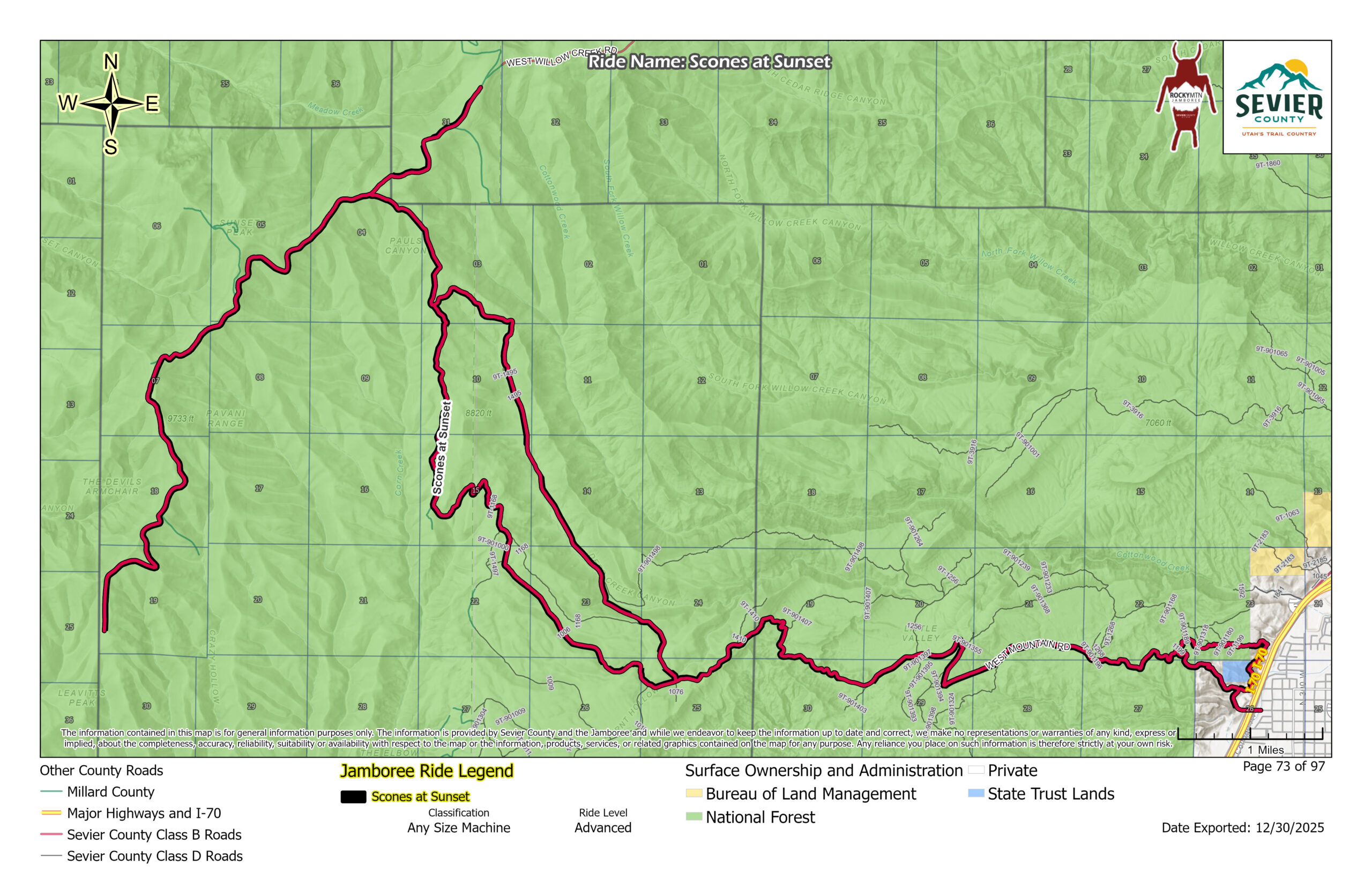 The ride requires you to trailer your machine about 60 minutes to Beaver. Leaving Beaver and wind up steep, twisting, tree-lined trails, travel through flower spotted meadows, negotiate switchbacks through beautiful groves of aspens and finally follow bubbling streams along the Tushar Mountain. On the way back we will travel west back into Beaver. There are several gates we will be passing through that make this ride a 50”. We will stop at several scenic lookouts and see the effects of wide fires in the area.