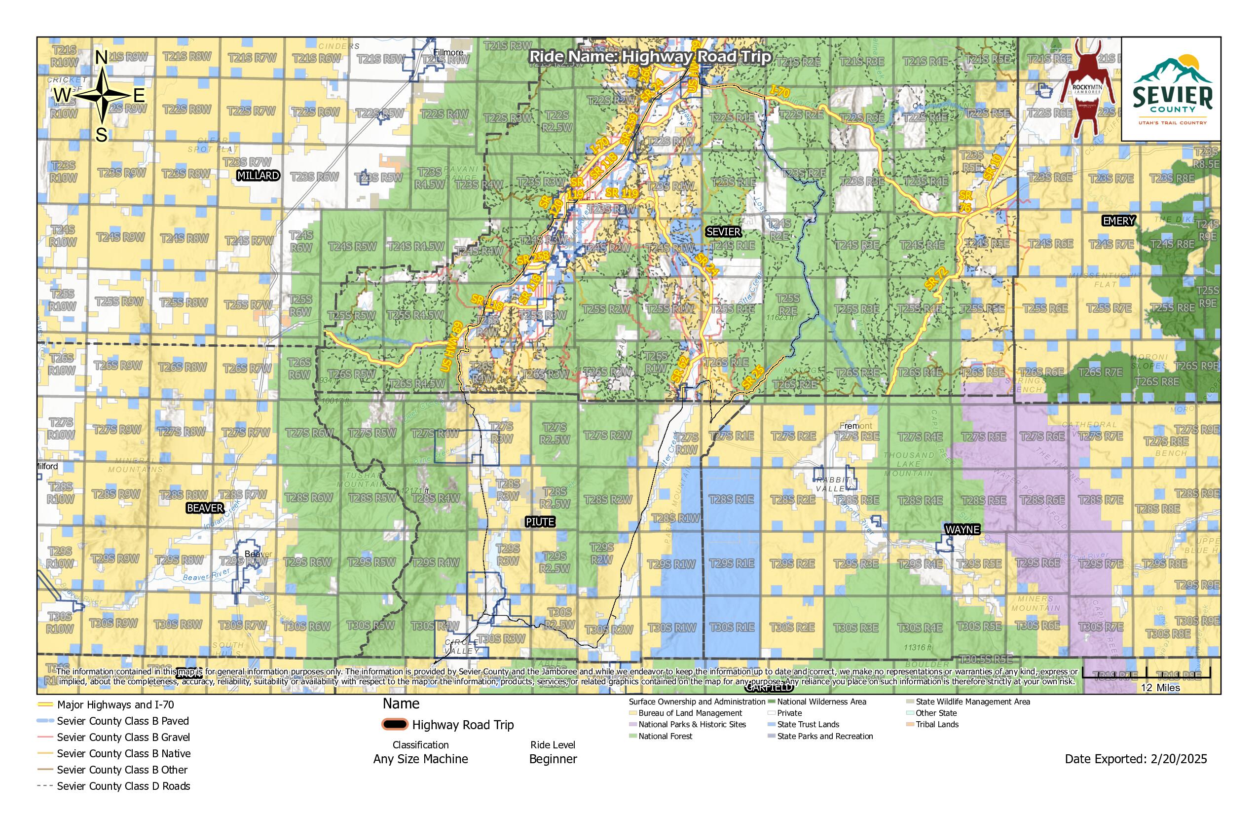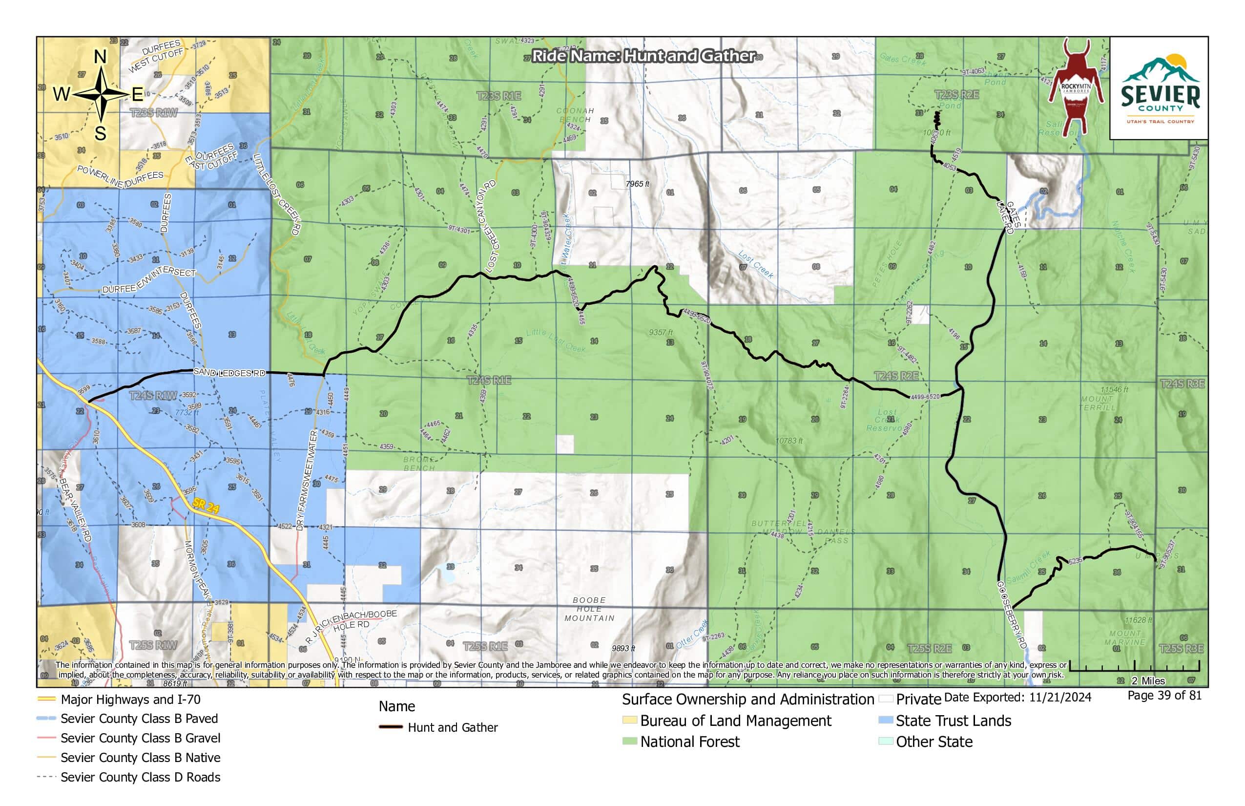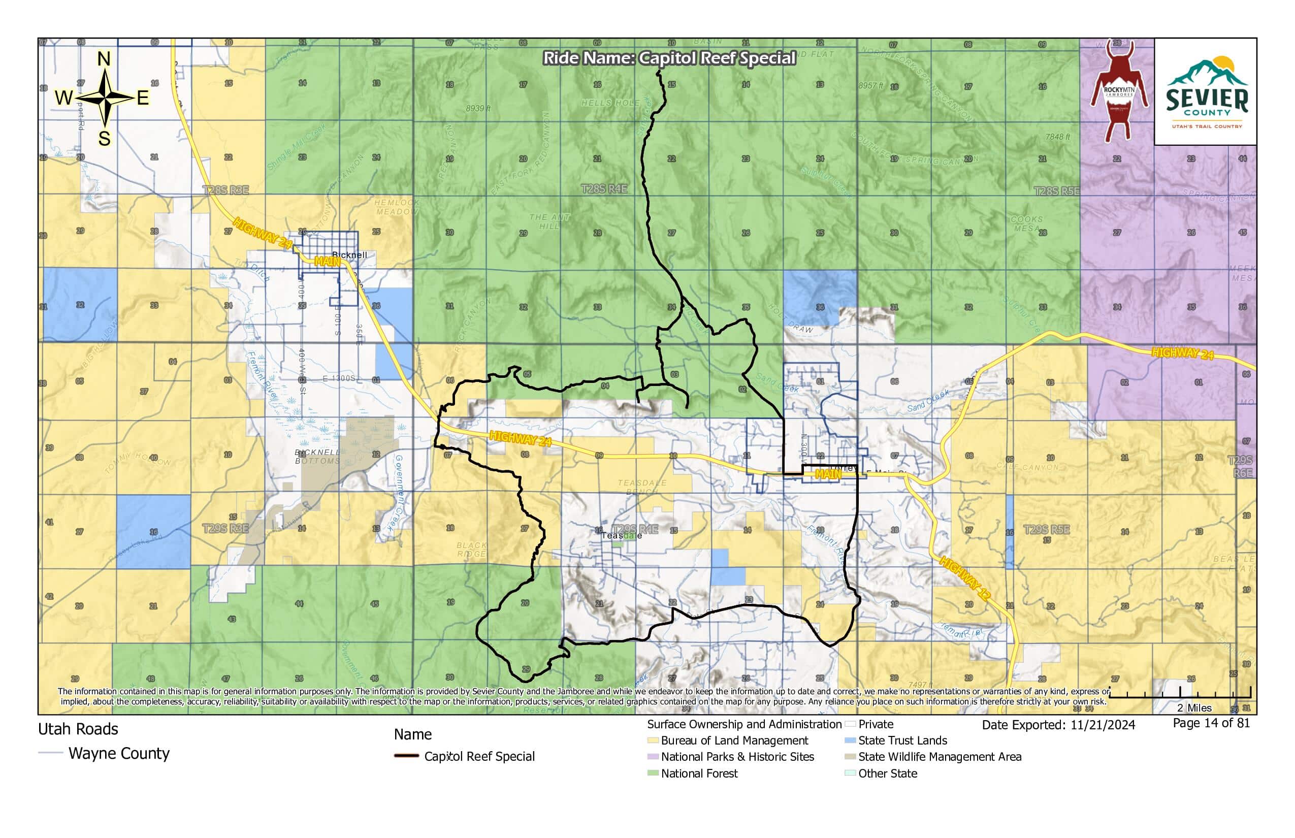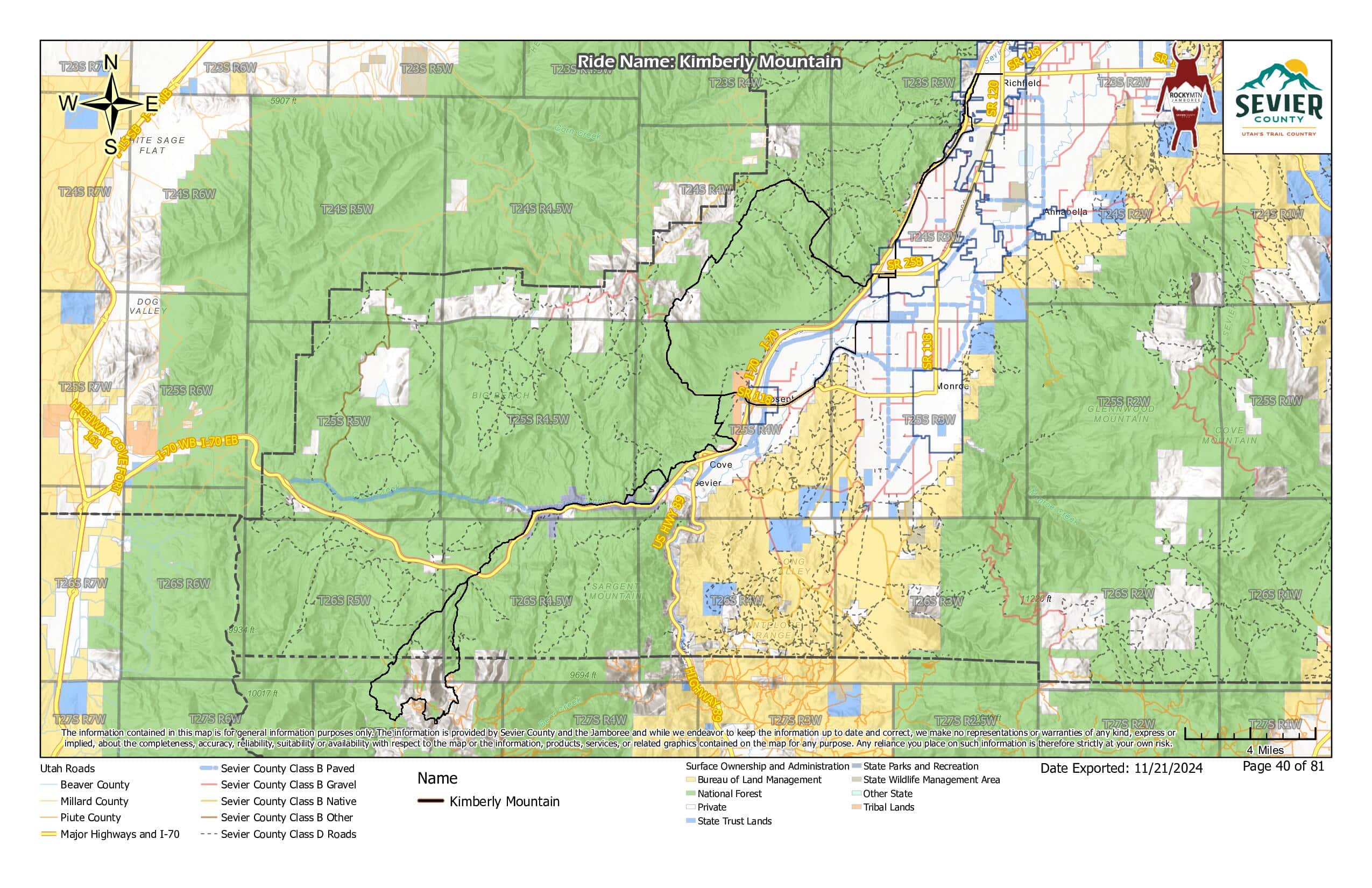 We will head south out of Richfield to the town of Elsinore where we will jump onto the powerline trail. The trail then continues south across the west bench, past the town of Joseph, where it drops into Fremont Indian State Park. From there we will head up toward Kimberly Ghost Town, where we will make a loop and then head back.