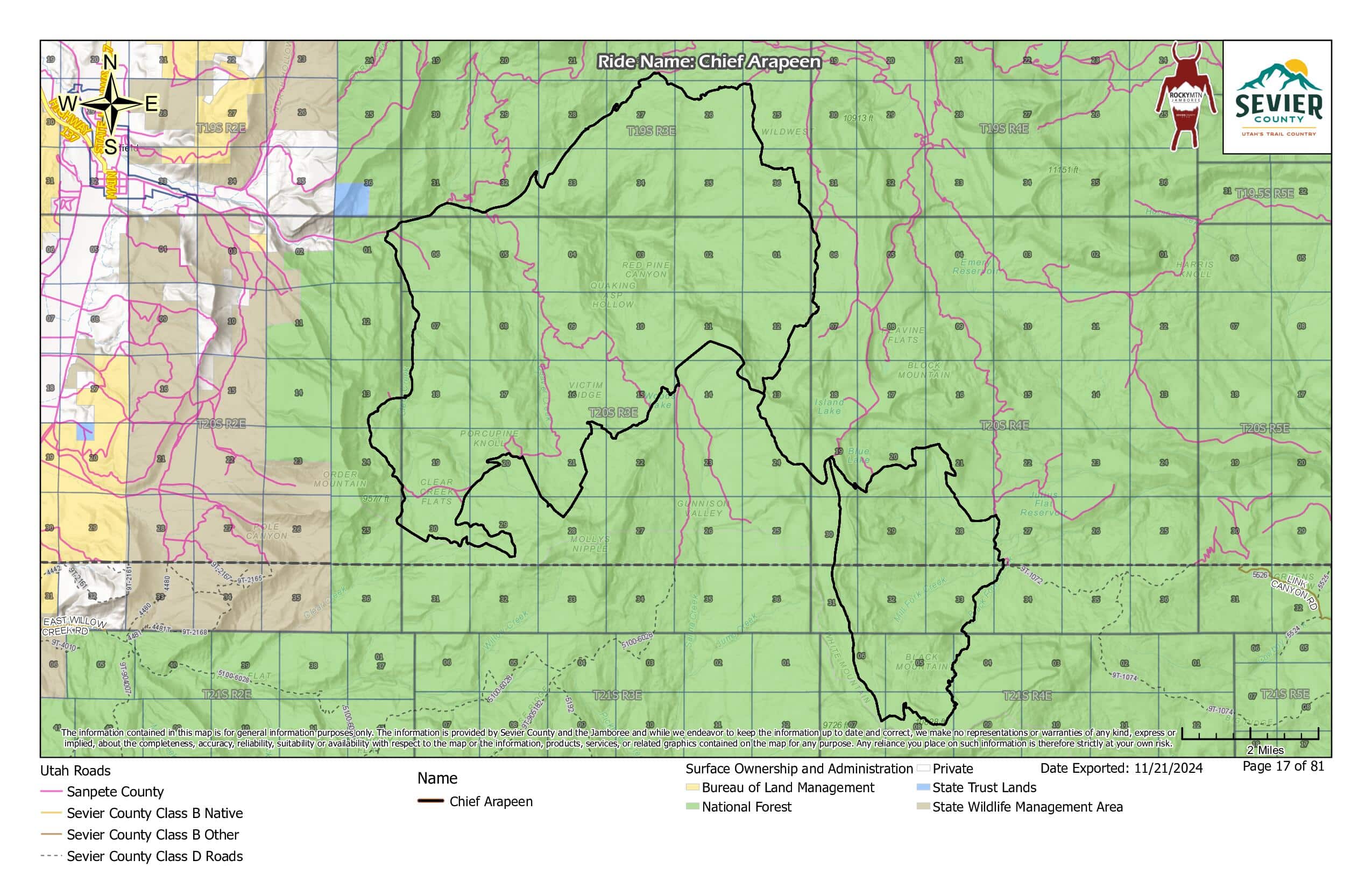 This ride is dedicated to longtime guide Don Jamison. We’ll start at the trailhead east of Mayfield and climb to the top of Skyline Drive. From there, we’ll travel along one of the longest high-elevation roads in the country as it stretches across the Wasatch Plateau. Near White Mountain, we’ll reach the high point of the ride and take in the same sweeping views Chief Arapeen once looked over 150 years ago. Along the way, we’ll pass below large rockslides, ride through open swamps, and follow the Pinchot Trail back down to the staging area. Plan to trailer your machine about 40 miles north to Mayfield.