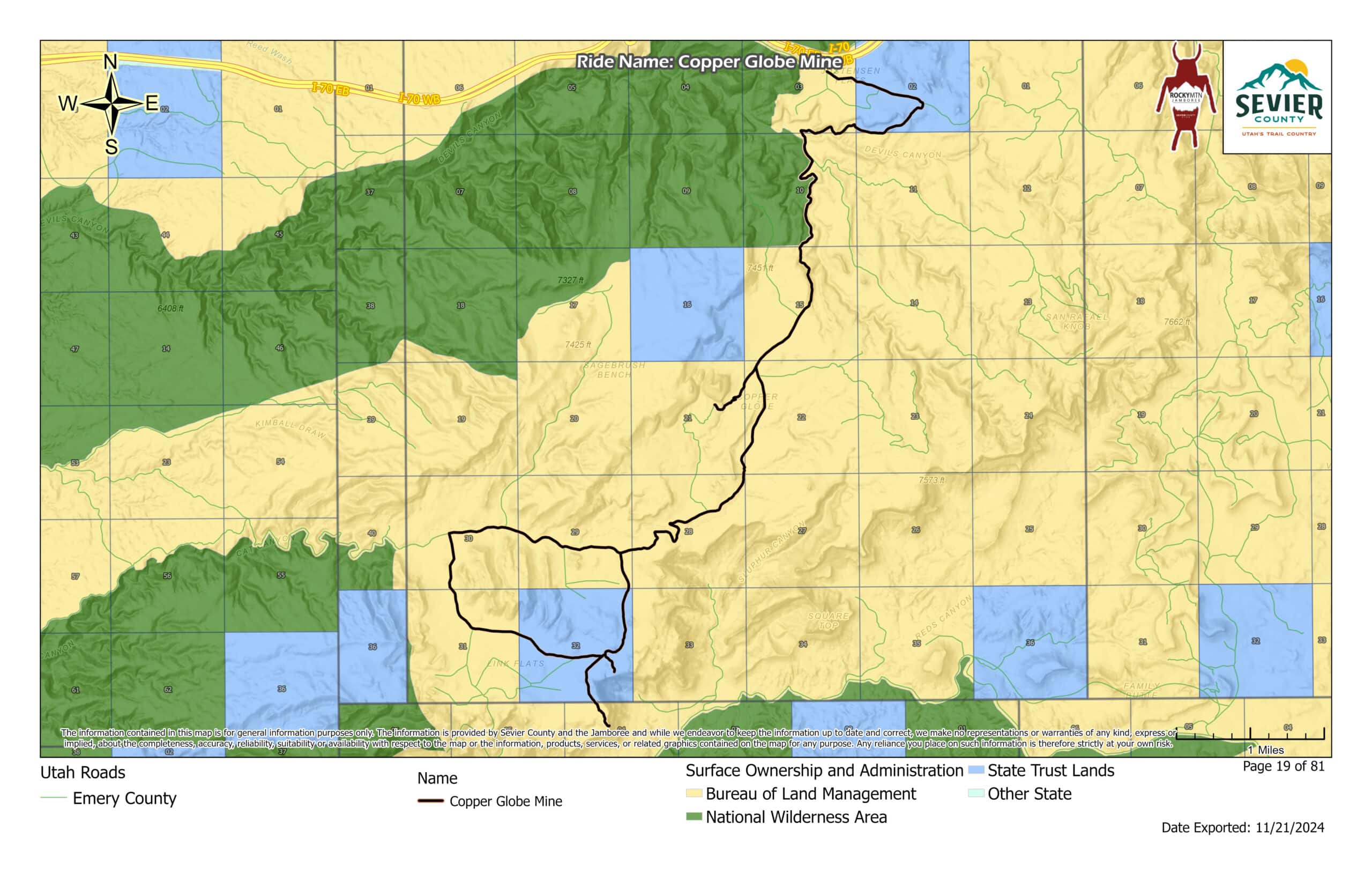 This ride will take you through the desert of the San Rafael Swell. Our destination is the Copper Globe Mine. If you lack experience or are hesitant upon seeing any portion of the trail, say something to a guide. The mine site is located in Emery County and operated from March 1899 to December 1997! You will have to trailer your machine approximately 1 hour from Richfield. Along the way, keep your eyes open for the wild horses that live in this part of the desert. We will make several stops along the way. Lunch will be on top of some cliffs that are over 1,000 feet high. There will be plenty of opportunities to see and photograph this untouched, wild country. A large portion of this ride is on maintained, county roads. Bring lunch, snacks, lots of drinks. Also, don't forget to bring a camera and some binoculars! The ride is approximately 25 to 30 miles in length. Come out with us and explore this spectacular desert, have a close-up look at some local history, and have a good time meeting new people.