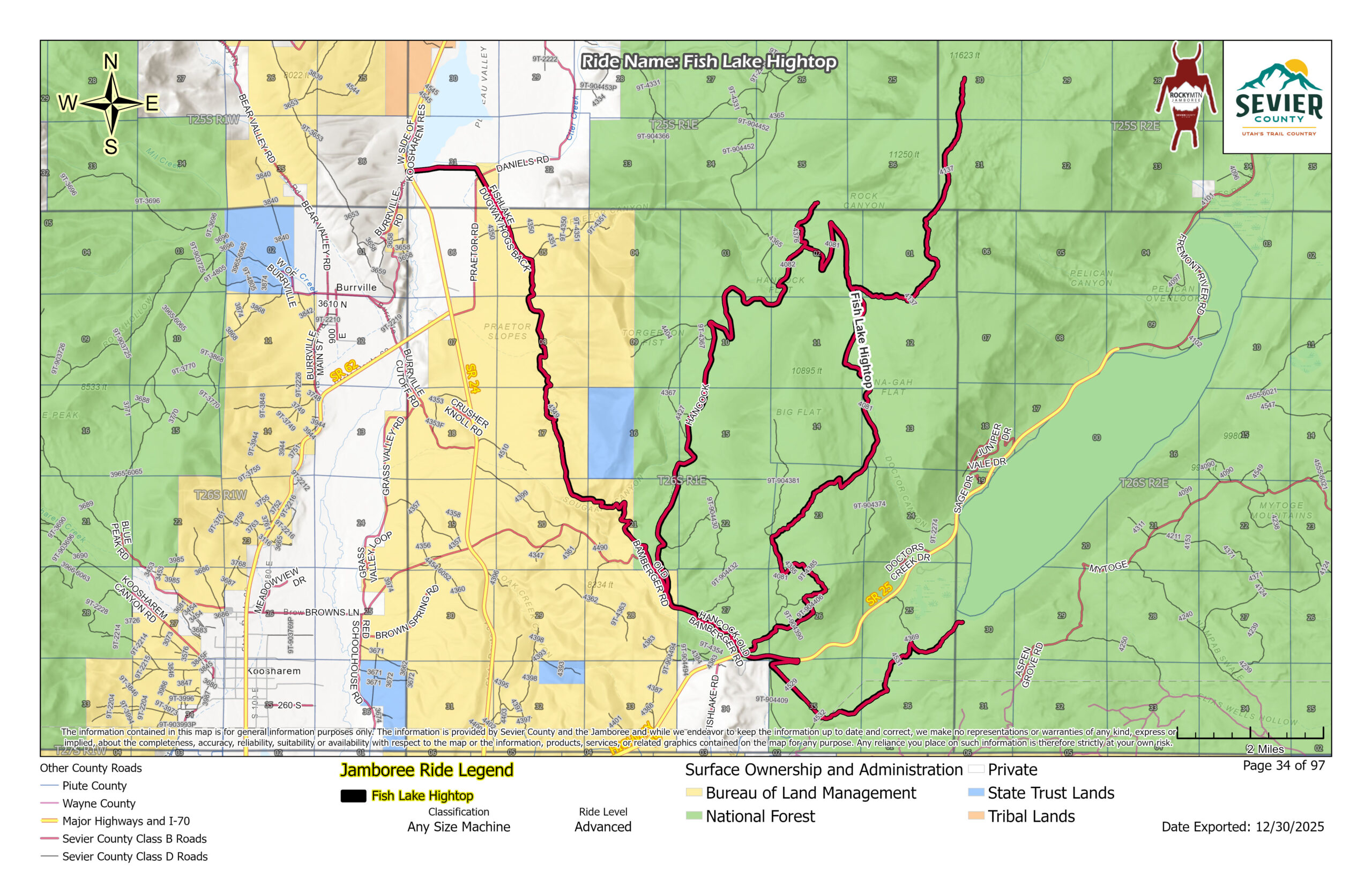 Trailer to Koosharem Reservoir, turn east across the dam, unload and head up the old Fish Lake Banburger Road. We will travel East to the South side of Fish Lake then up to Hightop and Hancock Flat. This is some steep downhill terrain. Then we will head back to the trucks. Make sure to pack a lunch and a love of the mountains.